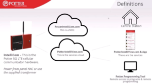 The Potter Intellicom is Potter's newest upcoming IP Cloud based fire alarm commutator. As of February 2024, it's expected to begin release within a few months. It will be capable of communicating over 5G and/or LTE to Potter's IntelliView cloud service, making it one of the first 5G communicators in the industry. [1]